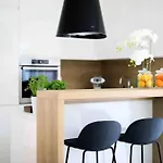 A fully equipped kitchen is featured with a fridge, an oven, and kitchenware, as well as coffee and tea making equipment, ensuring a better dining experience. Enjoy your stay at a terrace.